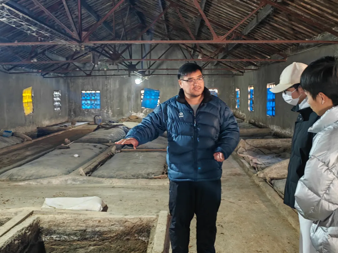 上午10时,队员们到达神仙酒厂,在酒厂相关负责人陈刚老师的带领下, 小队一行人参观了续糟混蒸、窖池固态发酵、老五甑传统工艺、原酒存放等制酒工艺流程,展现了神仙酒厂独特的大曲酒酿造技艺,为团队探寻中国传统酒类文化增添了一道靓丽的风景线。